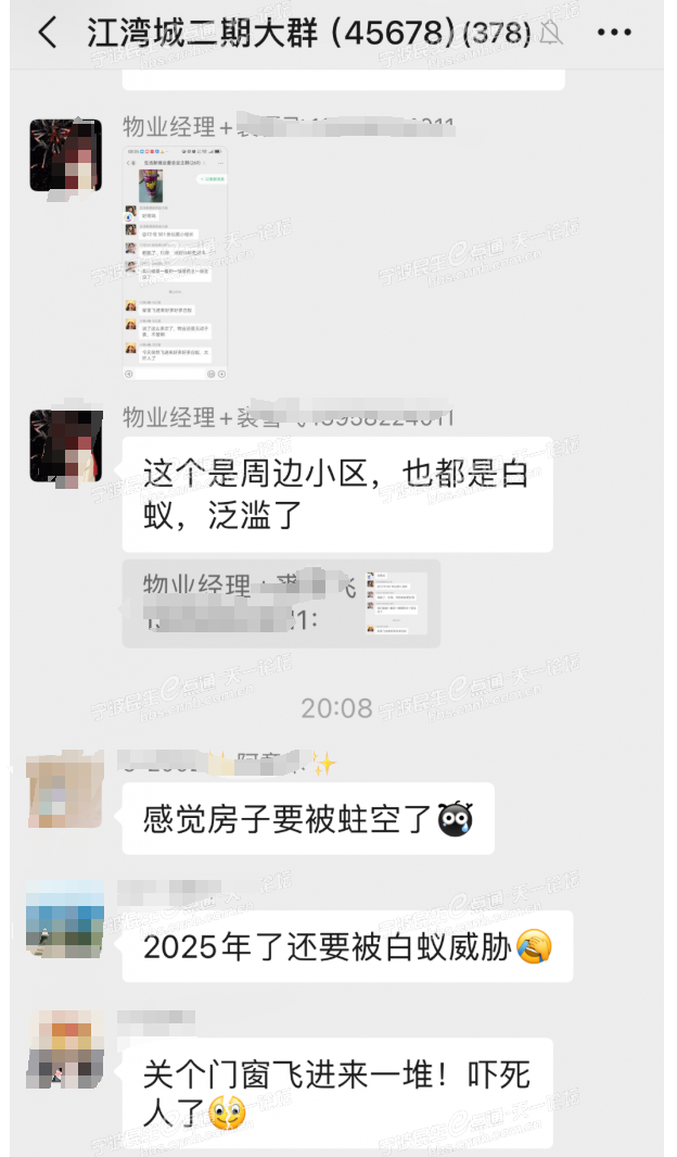 居民吐槽白蚁“袭击”(截图自江湾城业主群)。