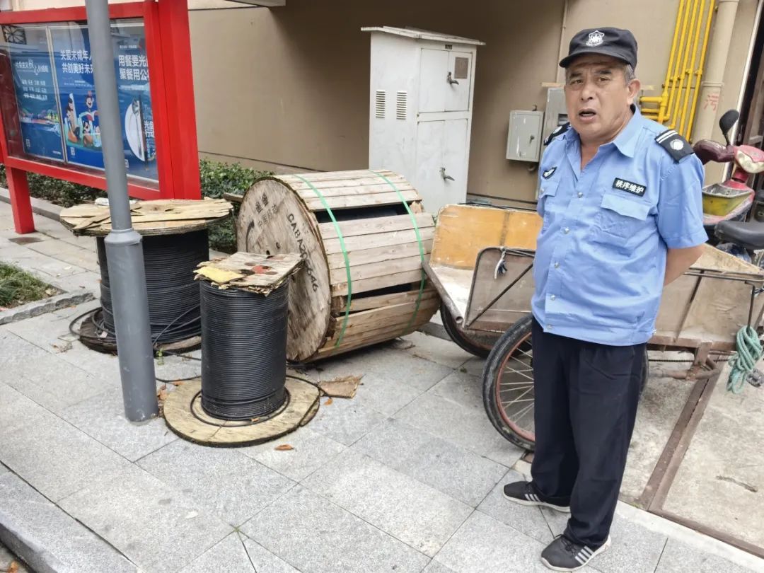所谓的“烂木头”,是堆在小区大门附近几个装光缆的包装木箱。